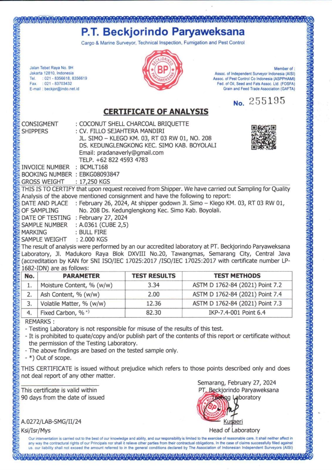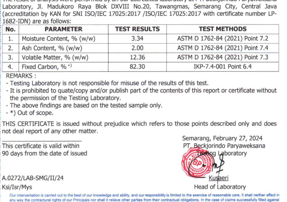 Our factory, PT Coco Total Karbon Indonesia, is the first to implement the 8-step quality control for Coco Sultan's briquettes. We are also one of the few cocosultans producers to receive ISO 9001:2015 certification